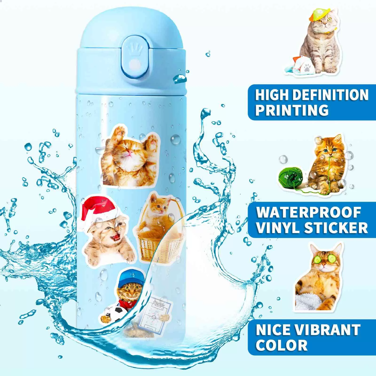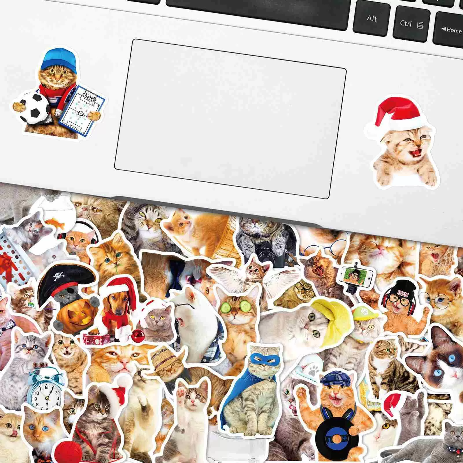 JIELEN 50 PCS Lindo Doodle de Dibujos Animados Gato Pegatinas, Paquete de Pegatinas de Vinilo Impermeable para Álbum de Recortes, Diario de Bala, Decoración de Planificador, Portátil, Teléfono, Manualidades DIY