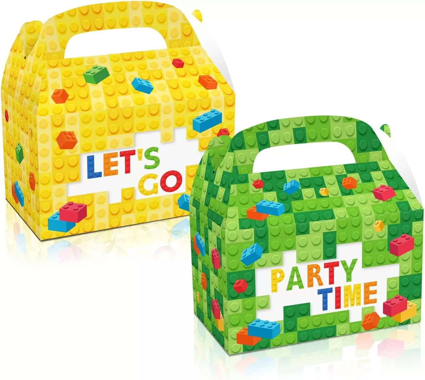 Diseño exquisito: estos son cuatro diseños, rojo, verde, azul y amarillo, con "Let 's Go" y "Party Time" impresos en la bolsa. Esta caja de papel agrega hermosos recuerdos a sus actividades.
