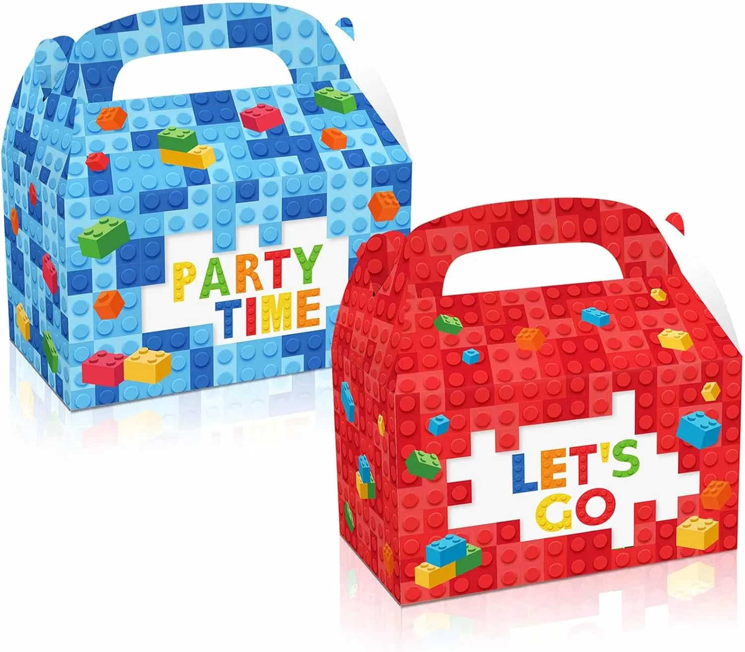 JIELEN 12 piezas de bloques de construcción cajas de golosinas para fiestas, caja de regalo de papel, cajas de regalos para fiestas, bolsa de recuerdo de fiesta de ladrillos coloridos para niños, bolsas de regalo de bloques de construcción para cumpleaños, suministros para baby shower