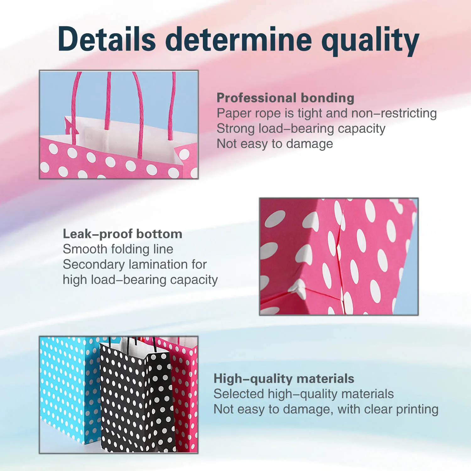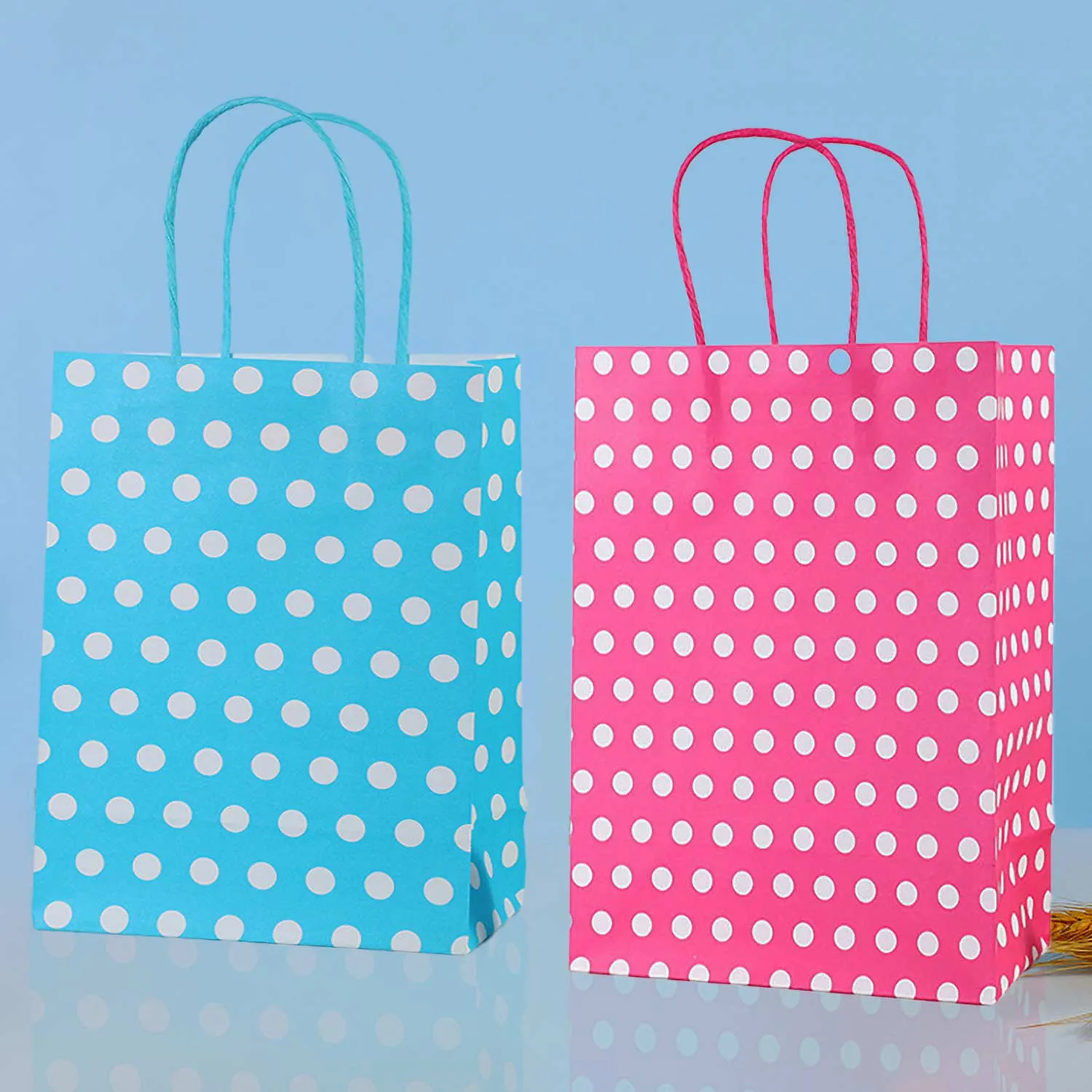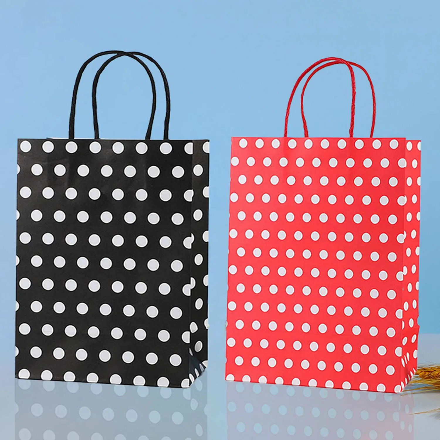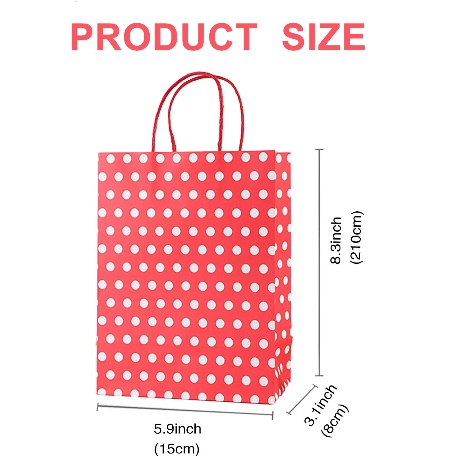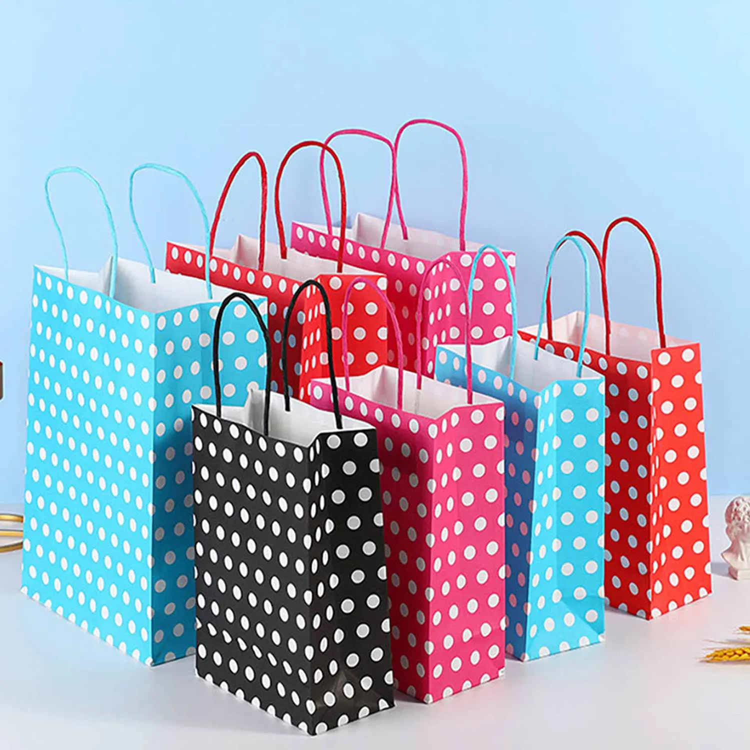 Embalaje de bolsa de regalo de lunares de moda: diseñado con un patrón de lunares de cuatro colores, hay 4 piezas en cada color, por un total de 16. Esta bolsa de papel presenta una apariencia elegante y llamativa, lo que la convierte en la elección perfecta para envolver regalos.
