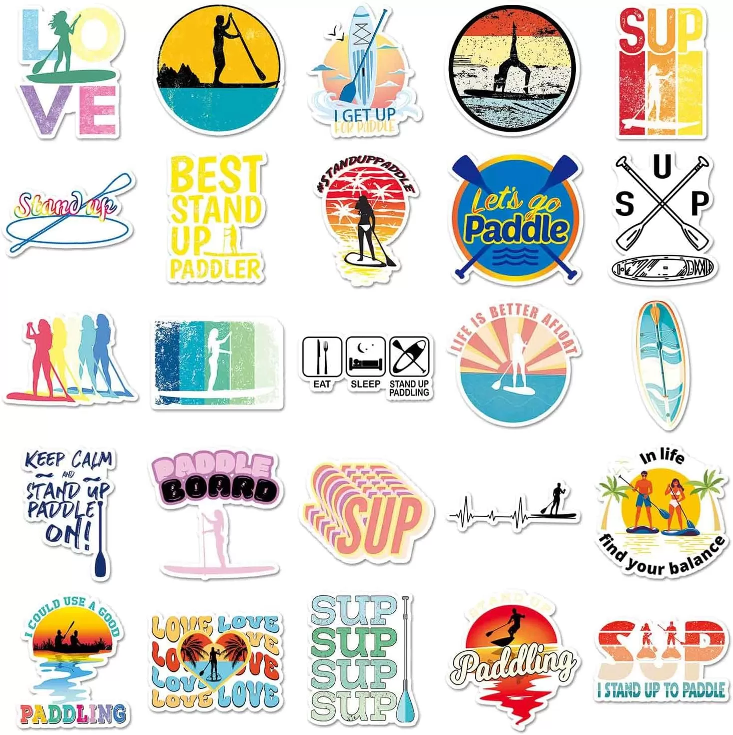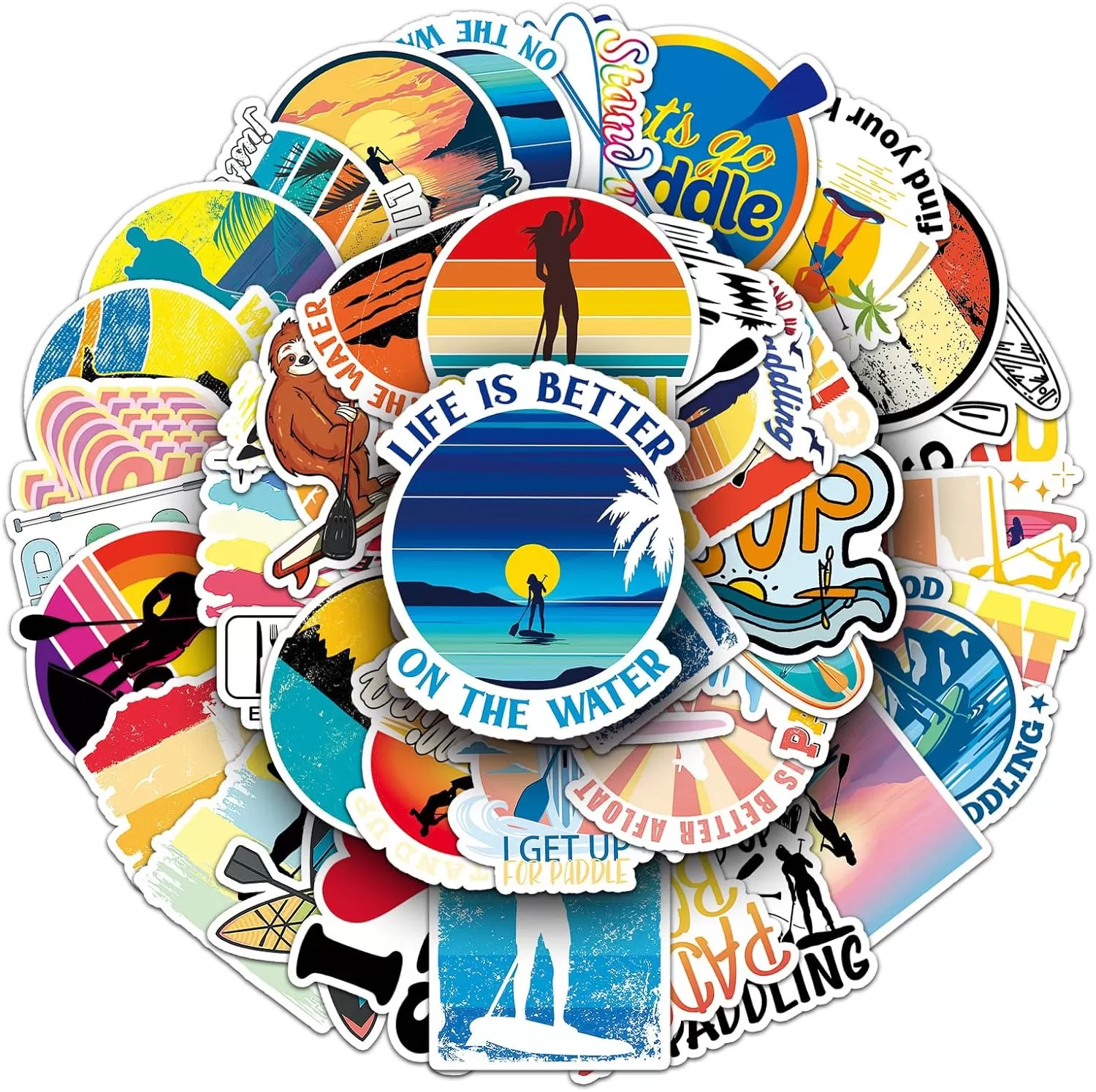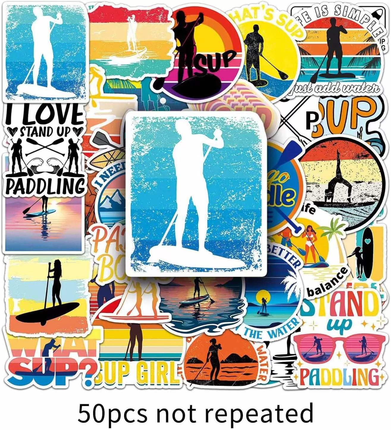 JIELEN 50 PCS Pegatinas De Paddleboard De Pie, SUP Sports Upright Single-Paddle Surf Y Esquí Acuático Pegatinas Decorativas Impermeables DIY
